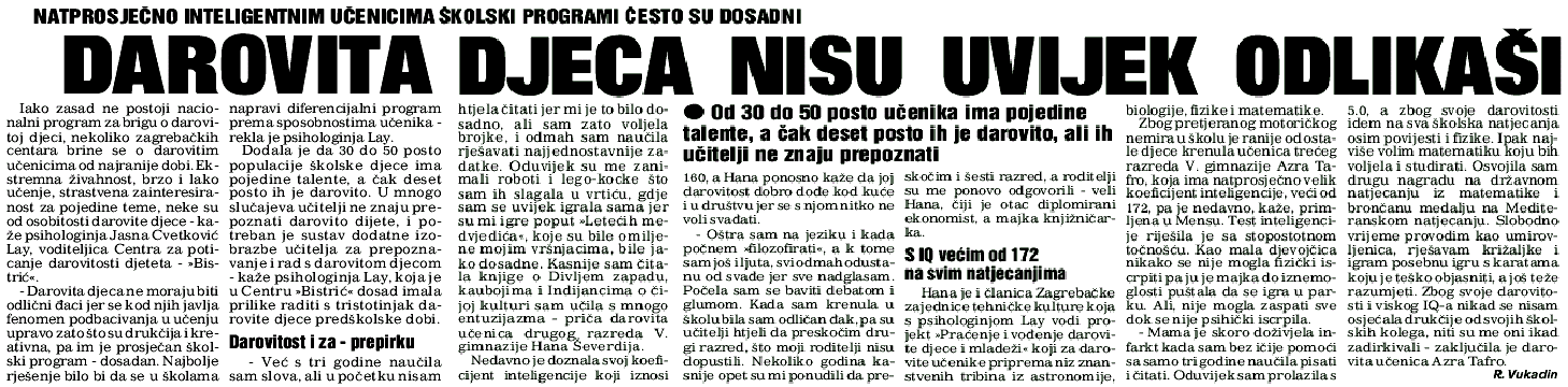 CENTAR ZA POTICANJE DAROVITOSTI DJETETA Dr. Jasna C.Lay Founder and vicepresident, Specialist in Gifted Education